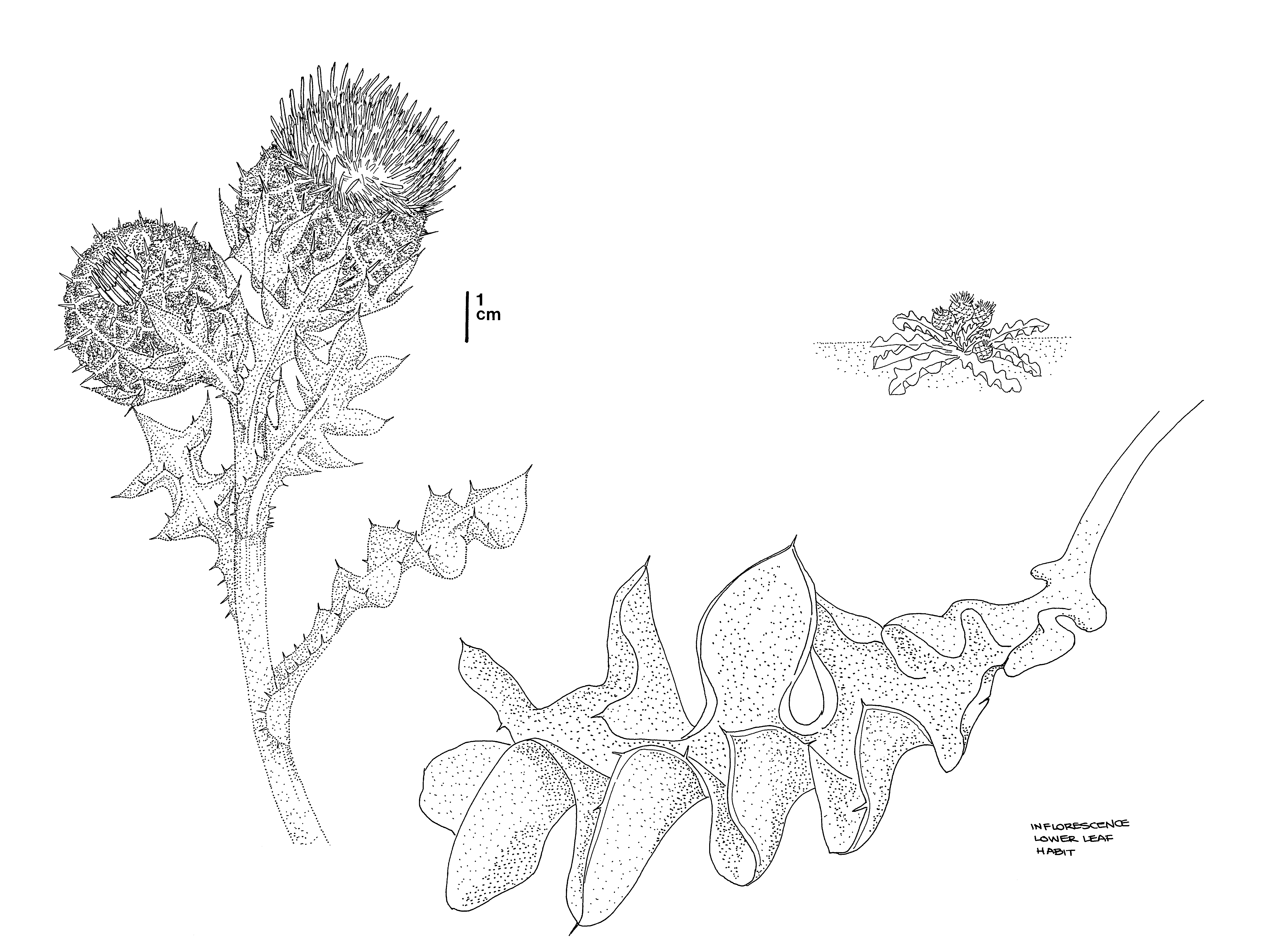 Cirsium rhothophilum. CDFW illustration by Mary Ann Showers. (Click to enlarge)