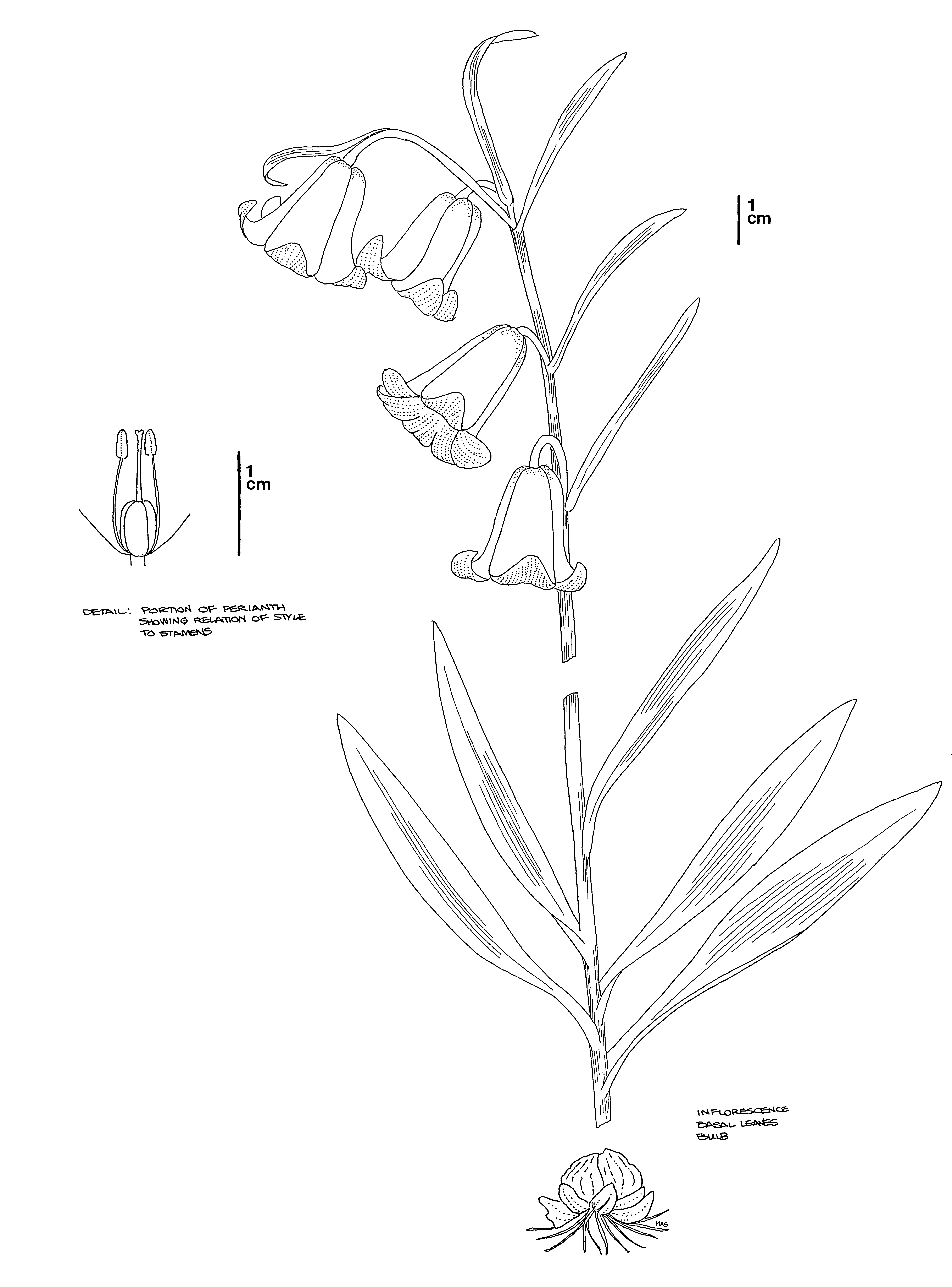 Fritillaria striata. CDFW illustration by Mary Ann Showers. (Click to enlarge)
